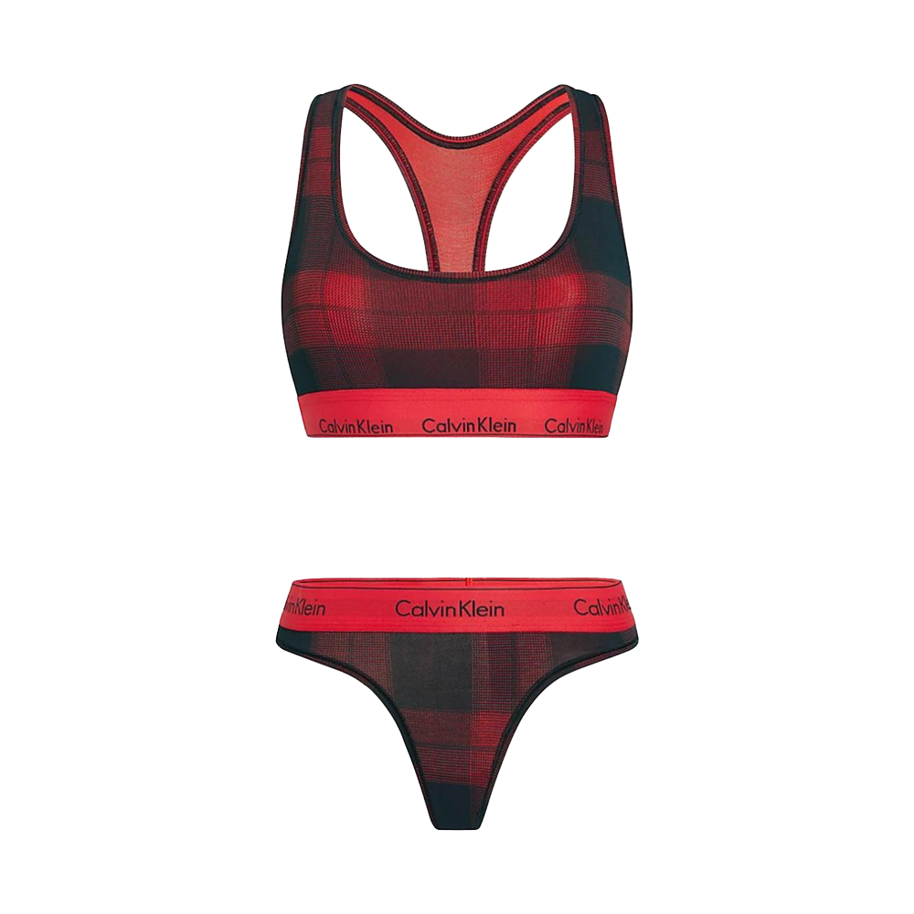 A breathable and sporty iteration on signature Calvin Klein underwear, the set features subtle red plaid patterns and the brand’s logo across the bands of each piece.