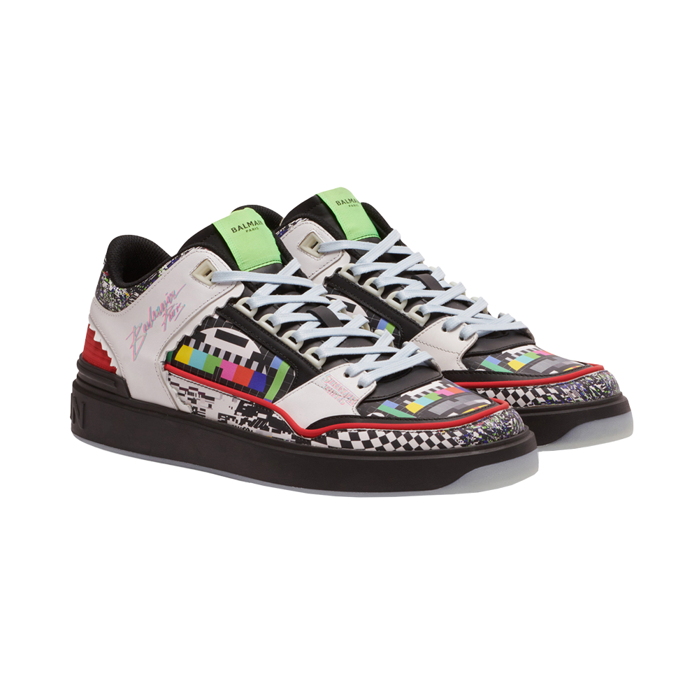 On this signature B-Court silhouette, Balmain adorns its leather uppers with TV static graphics as well as this collection’s pink dual-branded signature on the mid.