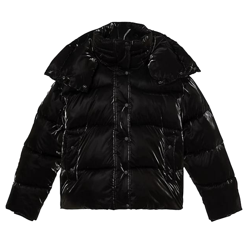 Made with sustainably-sourced materials, this bold shape both shields from the cold and maximizes style with its glossy oversized look.