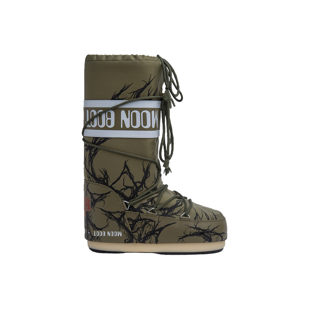 This classic Moon Boot Icon shoe sees all of the logos flipped — inspired by the series’ Upside Down. Arriving in a clean “Khaki” colorway designed to complement your winter fit.