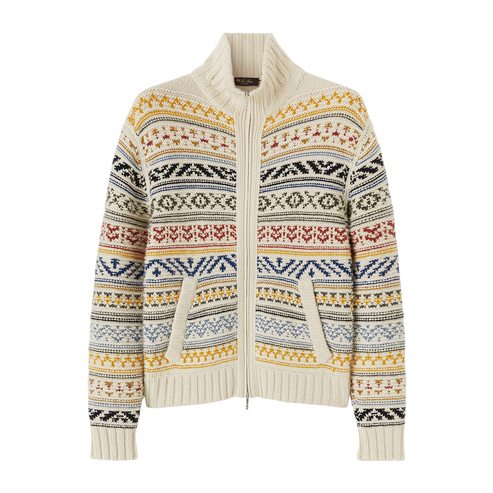 Loro Piana introduces new festive knits including this zipped iteration which can be easily layered.