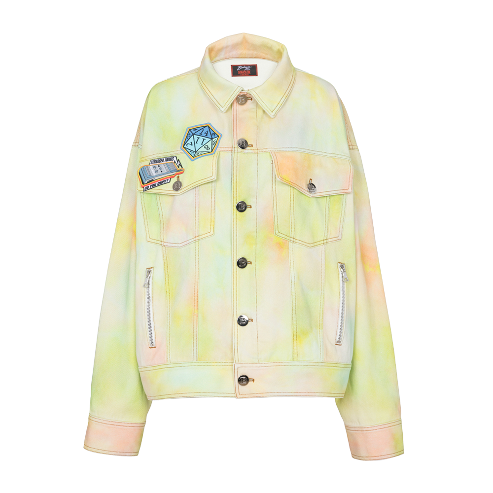 This yellow acid-wash oversized denim jacket boasts Balmain’s luxury touch whilst featuring ‘Stranger Things’ patches on the chest.